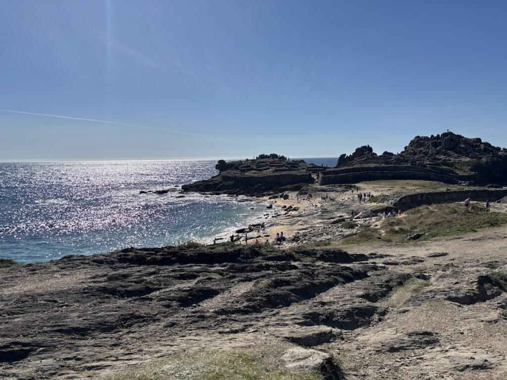 Lo que más llama la atención son las casas circulares de piedra. Puedes pasear entre ellas sin problema, entrar en lo que fue cada espacio, imaginar cómo vivían allí hace más de dos mil años, siempre con el mar tan cerca. Un mar que aquí lo cambia todo. A veces está tranquilo y otras golpea con fuerza las rocas. Le da al lugar un punto salvaje que hace que encaje todavía más con su historia.